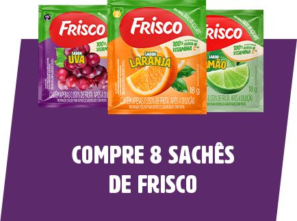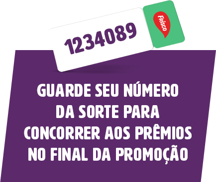 Na compra de 8 sachês de Refresco Frisco, em um mesmo cupom fiscal, você recebe 1 número da sorte.